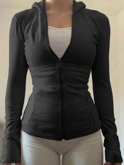 Chaqueta deportiva ajustada con capucha y lazo para mujer-49%