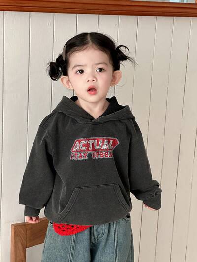 Sudadera con capucha de manga larga con estampado de letras en inglés, estilo coreano para niñas pequeñas-31%