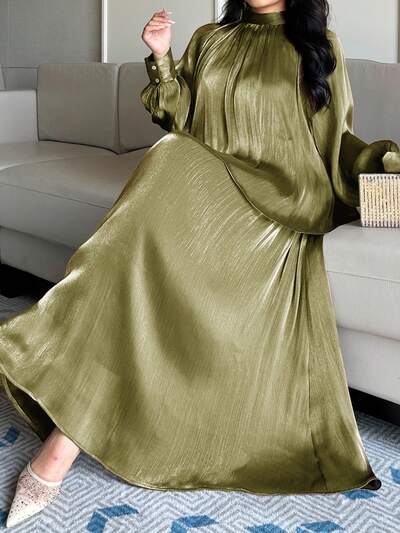Dazy Plus Elegante conjunto de 2 piezas para mujer talla grande: Blusa de manga larga suelta con cuello de corbata de gasa y falda larga de línea A, adecuado para ir a trabajar, primavera/verano