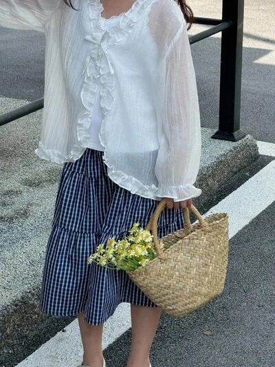 Camisa casual de manga larga con cuello en V de unicolor para niñas, primavera/verano-66%