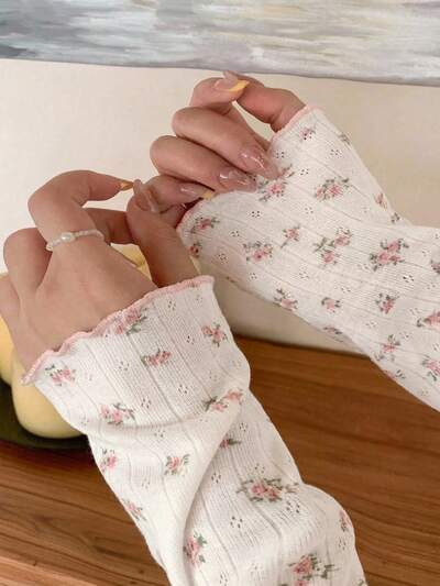 Dazy Plus Camiseta de manga larga con cuello redondo ajustada de talla grande en color blanco con parches florales y gráficos de verano en color contrastante para mujeres