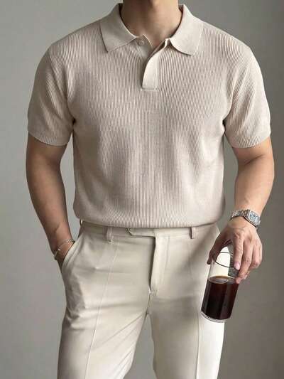 Suéter casual de manga corta con cuello polo a rayas para niño en verano-54%