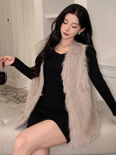 Veste sans manches ajustée à col en V de couleur unie pour l'automne et l'hiver-30%