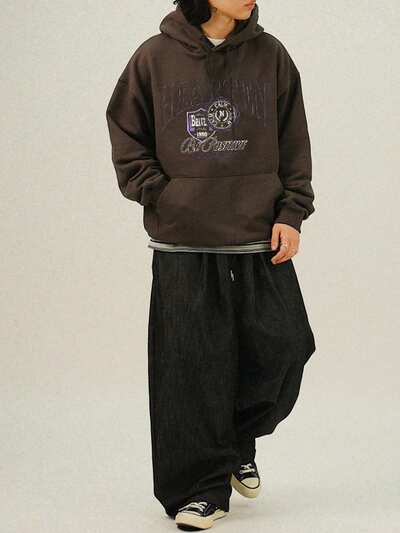 sweat-shirt à capuche thermique imprimé de lettres pour hommes, coupe ample, marron, automne/hiver-45%