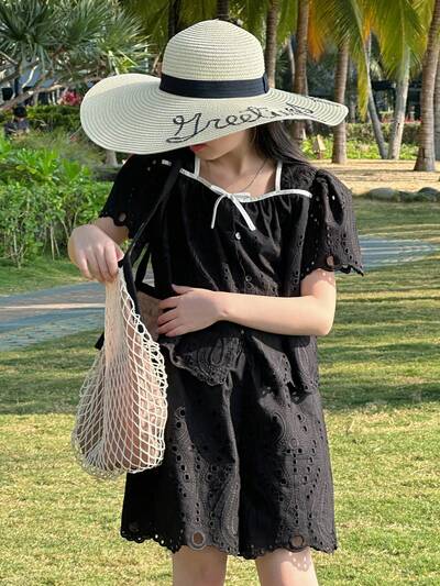 2 pièces/Set Blouse à manches courtes avec boutons devant et jupe pour fille de préadolescente, couleurs unies avec empiècement. Tenues d'été pour filles, vêtements pour la rentrée scolaire