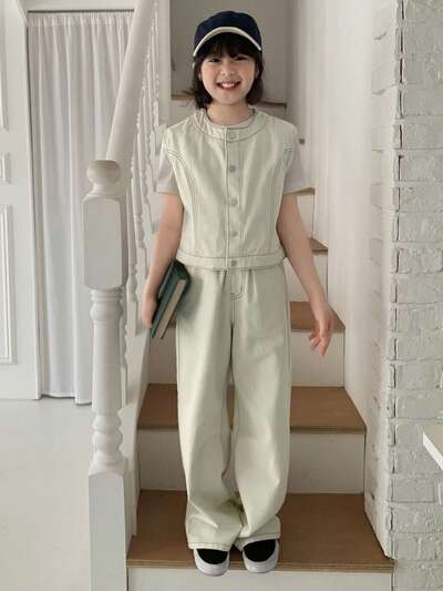 Tenues en deux pièces en jean pour préadolescentes, tenues d'été pour filles, vêtements pour la rentrée scolaire-44%