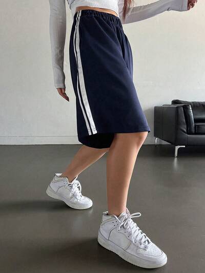 Shorts d'été avec taille élastique à couture latérale contrastante-49%