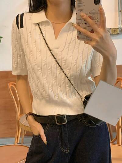Haut tricoté décontracté d'été à manches courtes pour femmes avec patch de lettre-35%