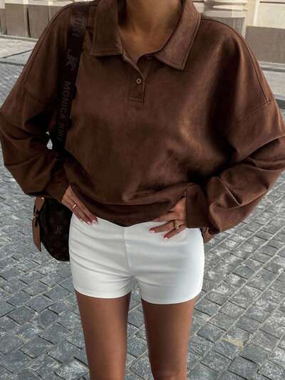 Sweat-shirt décontracté ample marron pour femmes, automne/hiver-35%