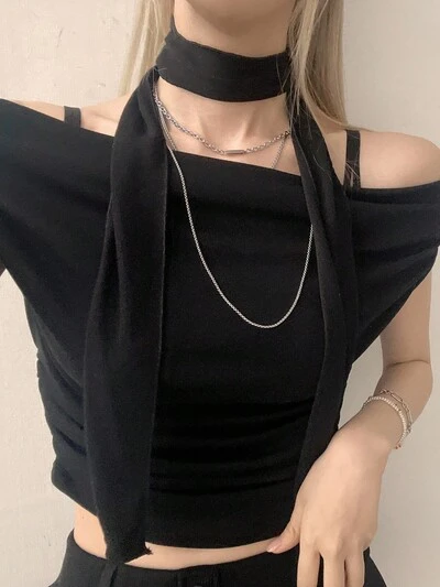T-shirt court et moulant à épaules dénudées plissé pour femmes, style mode décontracté