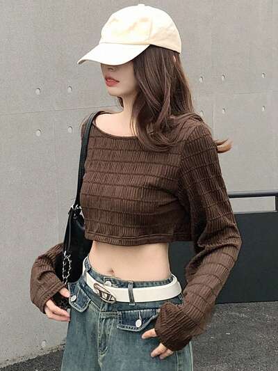 T-shirt À Col Rond Unicolore À Manches Longues Courtes-33%