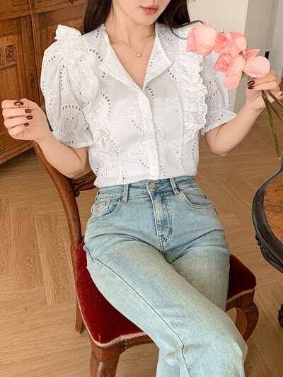 Chemise élégante et décontractée pour femmes avec patchwork en dentelle à manches longues, convenant pour les sorties, les mariages et les tenues de bureau décontractées