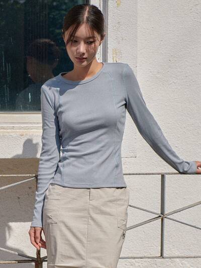 T-shirt casual à manches longues, col en V semi-transparent, de couleur unie pour femmes-65%