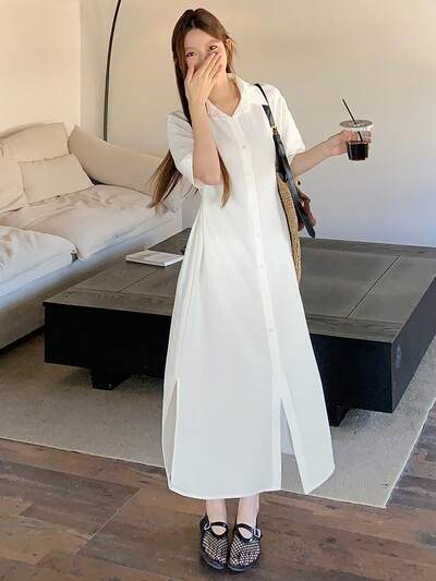 Chemise décontractée pour femmes à col rabattu, couleur unie, manches courtes