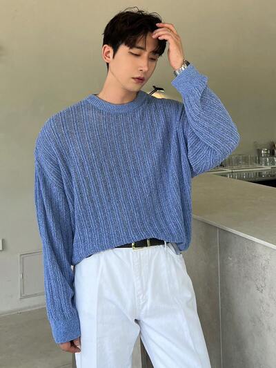 Maglione casual da uomo a tinta unita con spalle cadenti, abbigliamento business autunnale-60%