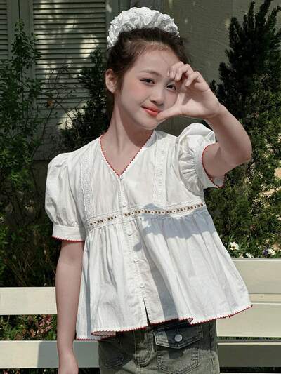 Blusa a maniche corte e scollo a V per ragazza, estiva, adatta al ritorno a scuola-44%