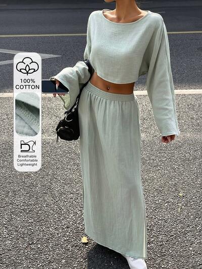 Set da 2 pezzi composto da top a maniche lunghe con design a vita attorcigliata e gonna, colore unito, di moda per feste e uscite-26%