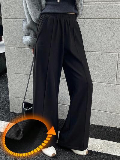Pantaloni casual a vita elastica, dritti, di colore unito, con fodera termica, adatti per l'abbigliamento da pendolare in autunno/inverno-44%