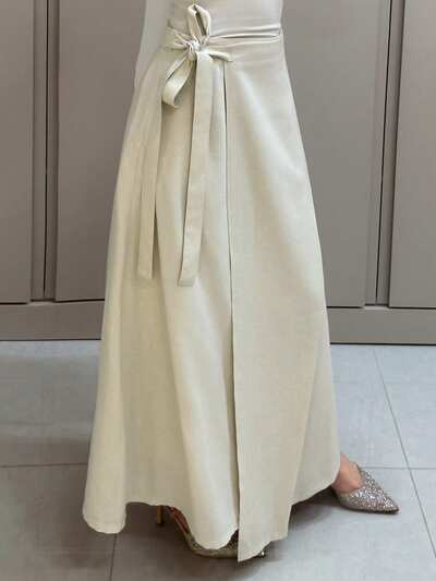 Gonna lunga elegante a colore unito con laccetti e avvolgimento per le donne-44%