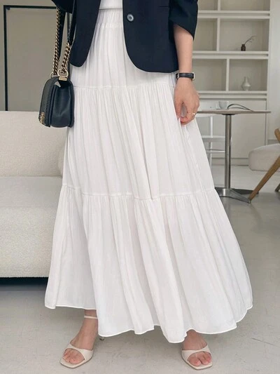 Gonna bianca elegante da donna con vita elastica, multistrato e balze, adatta per le vacanze estive-29%