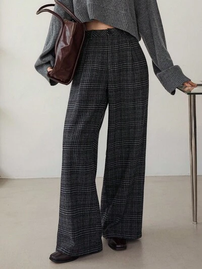 Pantaloni casual dritti e larghi a quadri da donna, adatti per il business, l'ufficio, i pendolari, pantaloni da abito autunnali/invernali per donna-29%