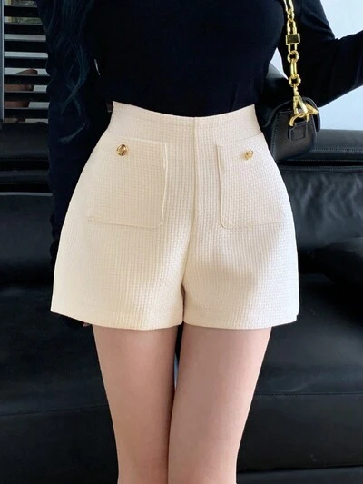 Pantaloncini casual da donna con doppia tasca, abbigliamento autunnale-29%