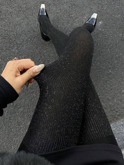 Leggings lucidi a vita elastica di colore unito da donna-37%