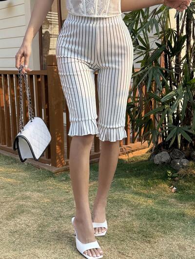 Pantaloncini bermuda da donna con balze a righe, casual ed eleganti, adatti per vacanze, spiaggia, matrimoni, pendolarismo, vestibilità slim, primavera/estate stile Y2K-69%