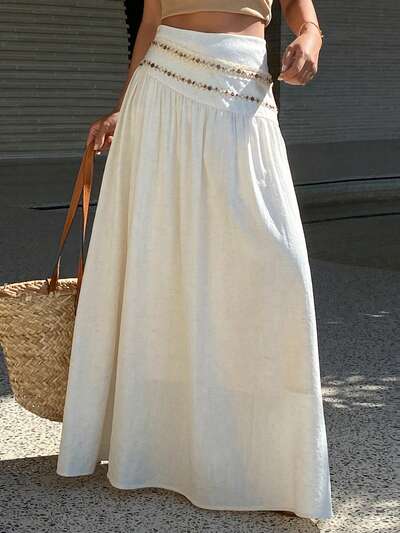 Gonna da spiaggia per vacanze, decorata con perline bianche, adatta per l'estate e la Pasqua-50%