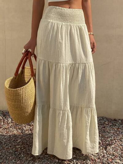 Gonna semplice a-line plissettata con coulisse, tinta unita, per uso casual quotidiano-70%