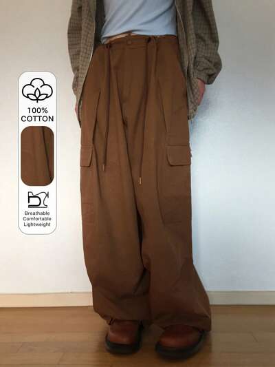 Pantaloni cargo ampi da donna con vita regolabile a coulisse, colore marrone, adatti per tutte le stagioni-44%