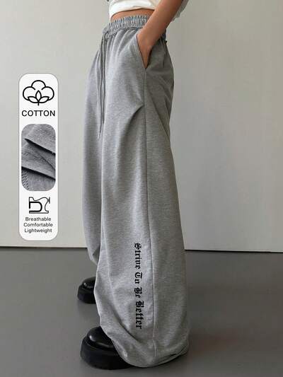 Pantaloni larghi con stampa di lettere, vita elastica con coulisse, pantaloni casual sportivi stile strada, per donna, primavera/estate stile Y2K-25%