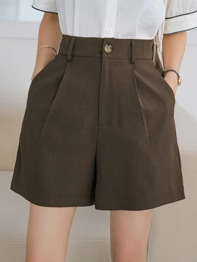 Pantaloncini casual da donna con vita in vita, colore unito, dritti e morbidi, adatti per le vacanze estive. Pantaloncini a maglia estivi.-44%