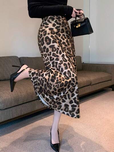 Gonna lunga da donna a stampa leopardata a sirena, elegante, abbigliamento autunnale e invernale per donna-44%