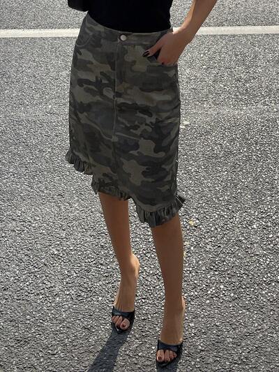 Gonna estiva casual da donna con volant e fantasia mimetica a sirena-35%