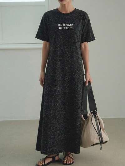 Abito lungo casual con stampa a lettere tie-dye, adatto per uso quotidiano