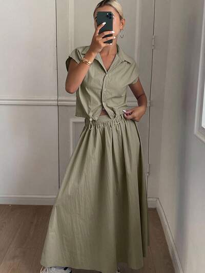 Set da 2 pezzi composto da camicia corta e gonna in colore unito, casual per l'estate, da donna