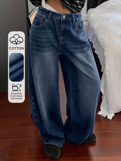 Jeans vintage ampi e scoloriti, stile casual da strada, vita larga, stile Y2K per donne