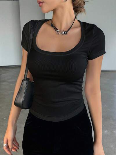 Canotta aderente a costine con scollo quadrato, estiva per donna