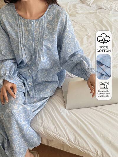Set pigiama da donna con stampa floreale ditsy e volant, morbido e ampio-68%