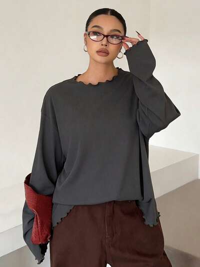 Felpa ampia da donna a maniche lunghe, girocollo, tinta unita, capi autunnali, abbigliamento per il ritorno a scuola-61%