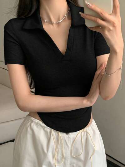 T-shirt girocollo tinta unita, stile preppy