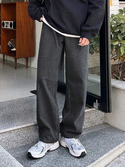 Jeans da uomo a gamba dritta tinta unita, abbigliamento back to school, stile grunge