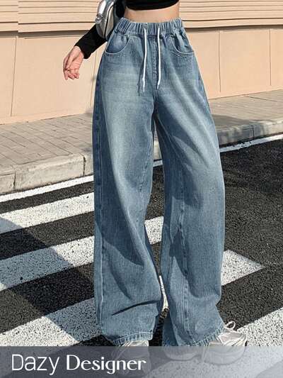 Jeans ampi casual da donna con coulisse in vita, jeans oversize