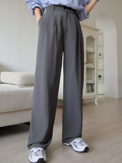Pantaloni con pieghe e tasche inclinate, pantaloni da abito da donna per abbigliamento da lavoro