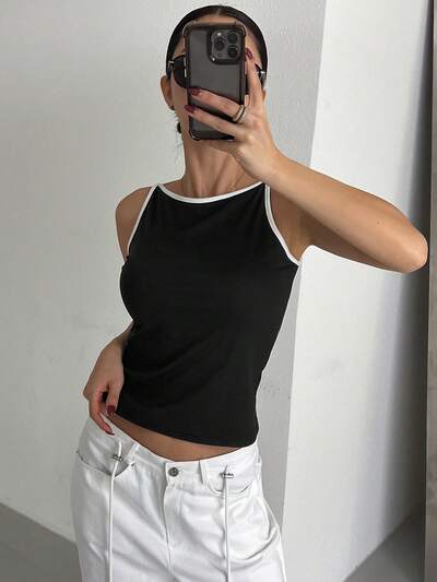Top donna senza schienale con scollo a incrocio, top corto donna con collo ad aletta senza maniche