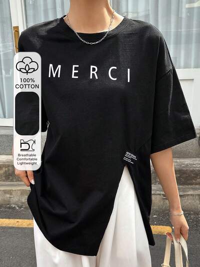 Tee Con Spalla Cascante E Ricamo A Lettere-46%