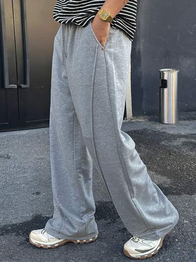 メンズ ライトグレー 無地 ウエスト伸縮 スウェットパンツ、春-67%