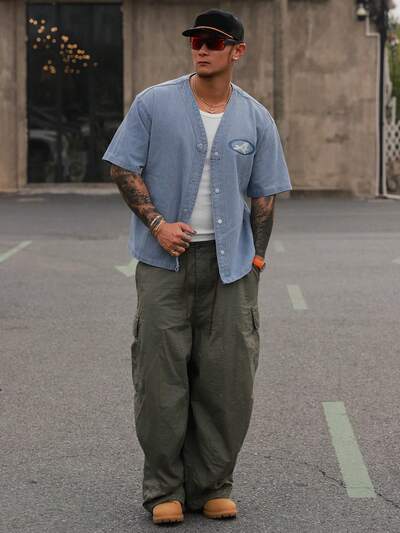 メンズ レタープリント 半袖 ウォッシュデニムジャケット、夏用-33%