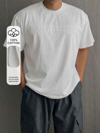 メンズ レターエンブロイダリー ライトグレー Tシャツ、夏用-62%